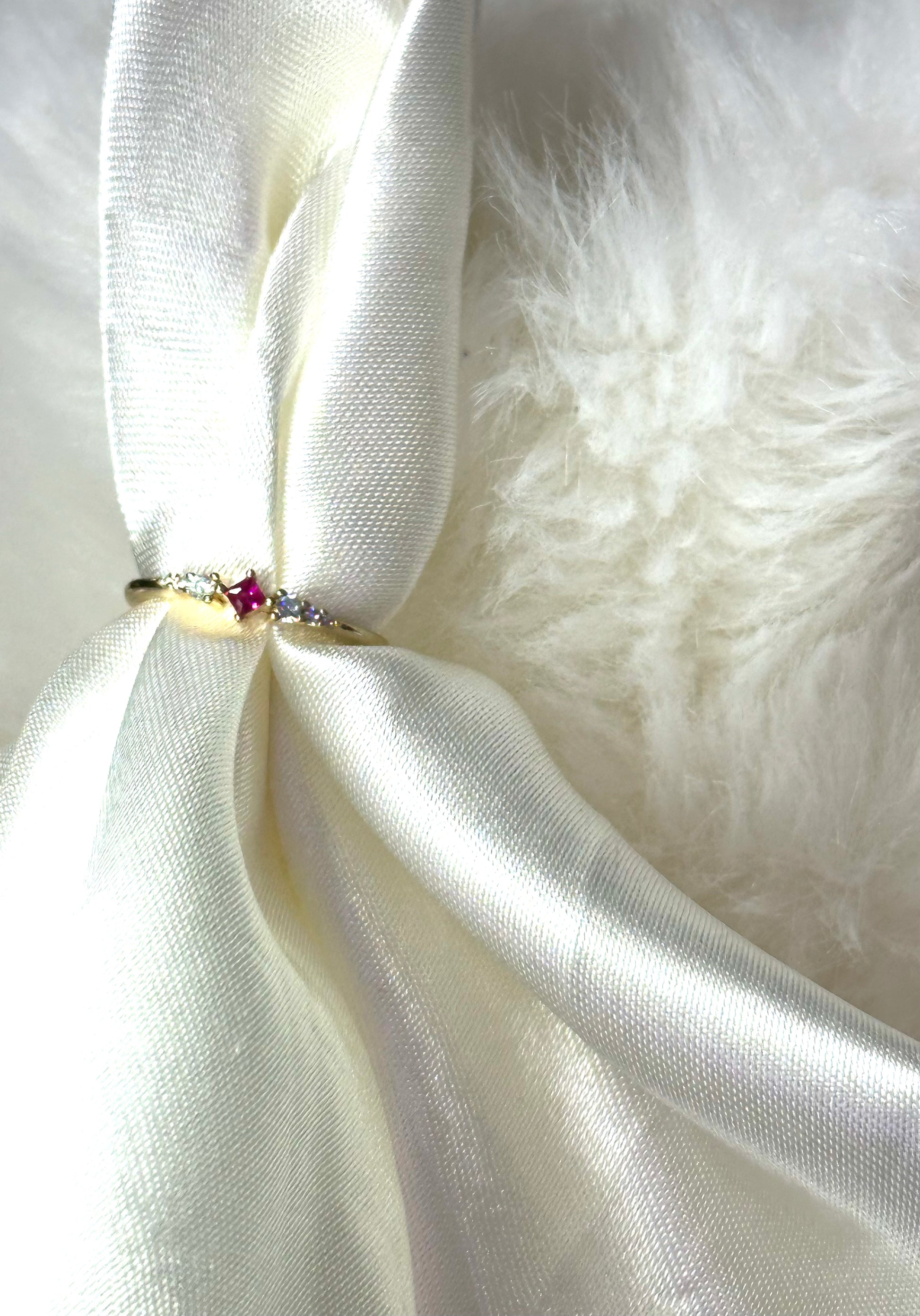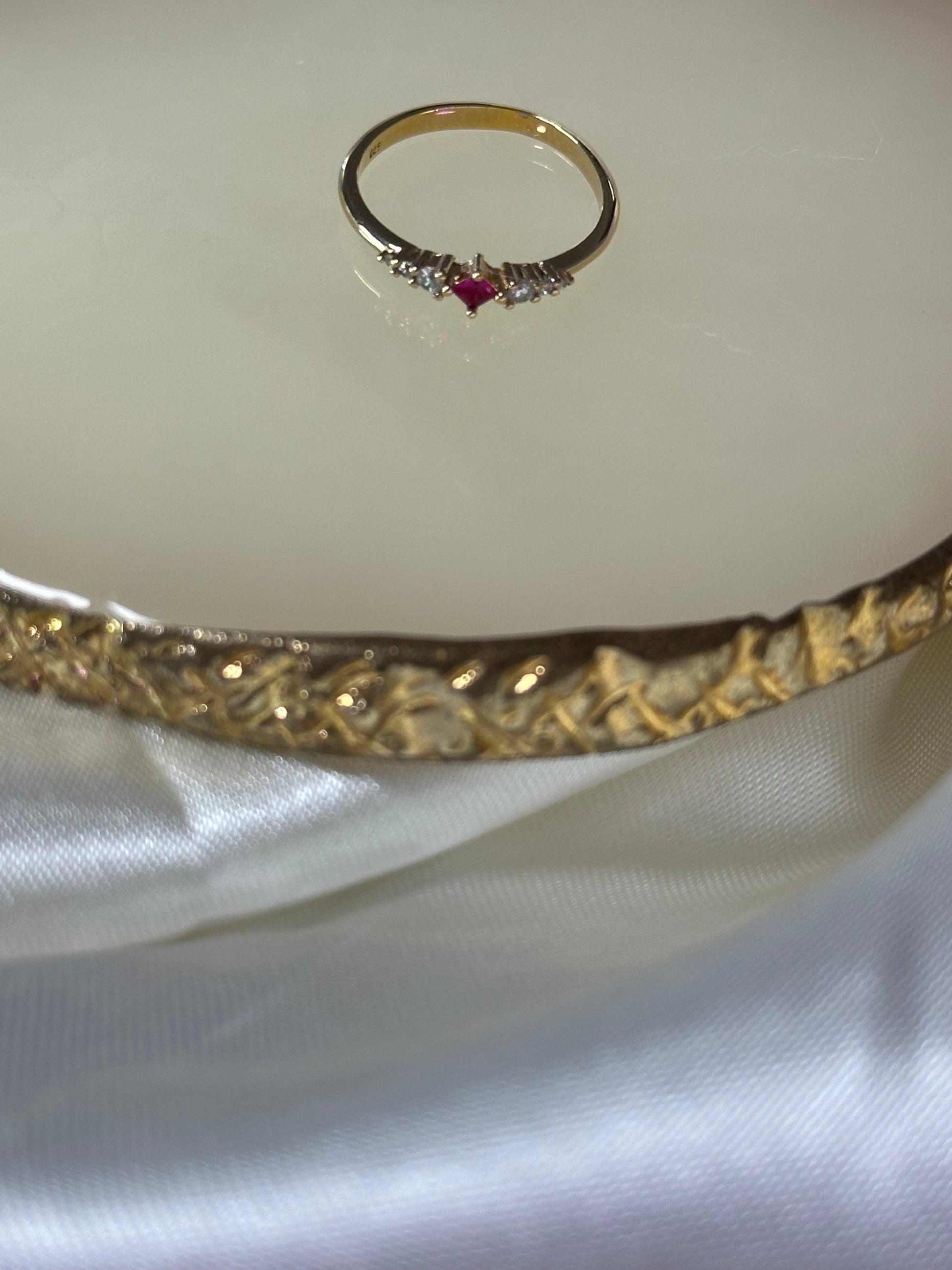 טבעת כסף 925 מצופה זהב ובמרכזה אבן רובי קטנה
