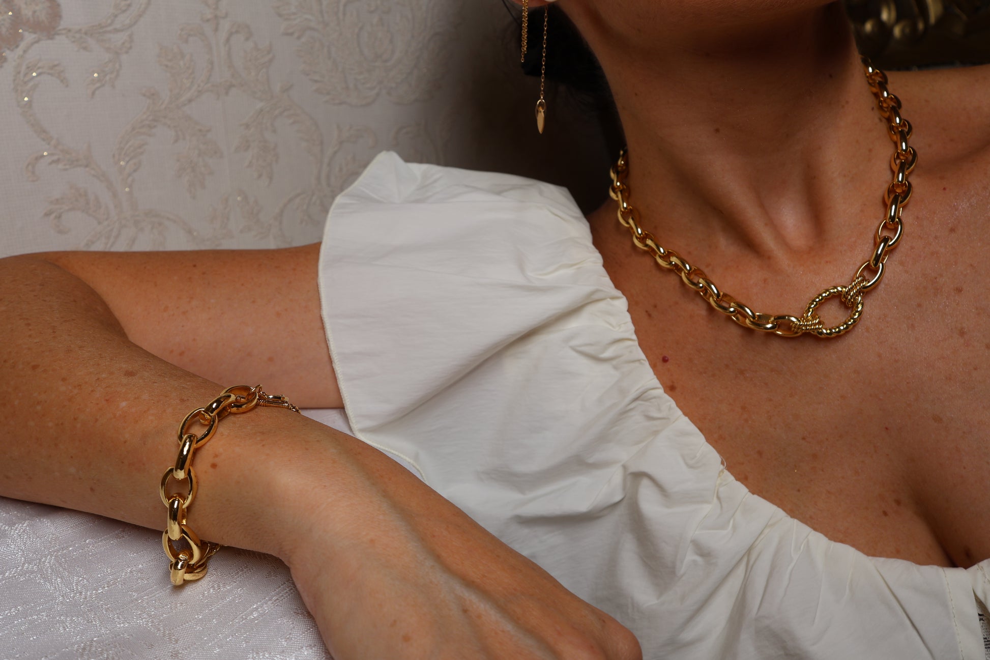 צמיד ענק בציפוי זהב עשוי חוליות עבות