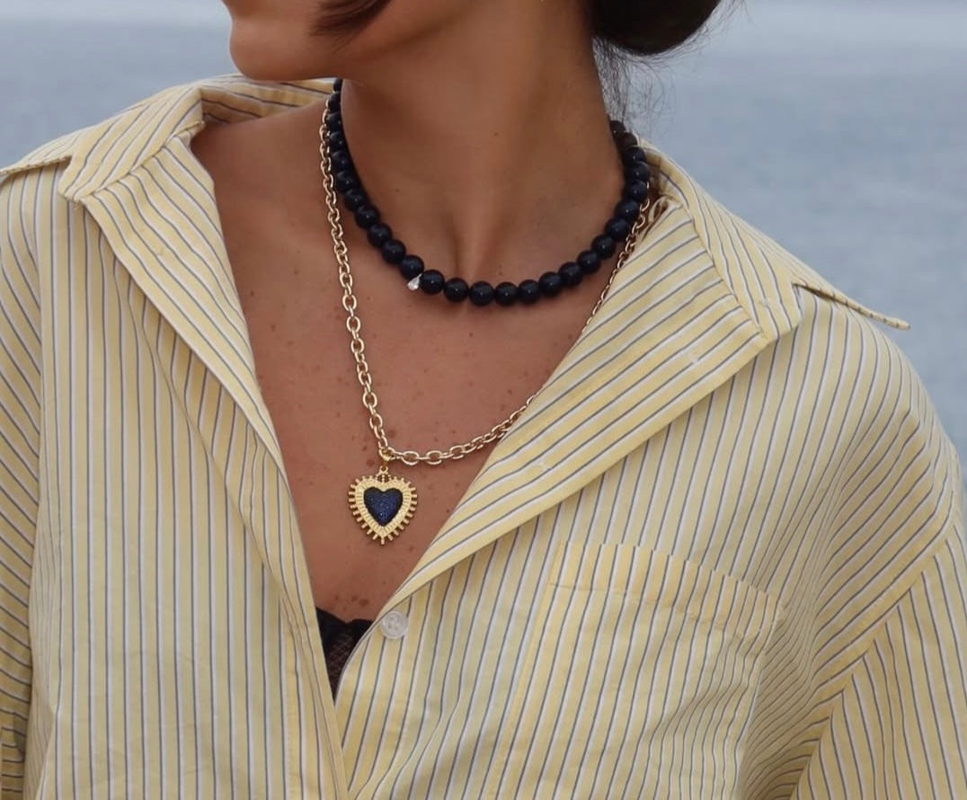 להשלמת הסט ניתן לענוד עם שרשרת חרוזים לאפיס כחולים