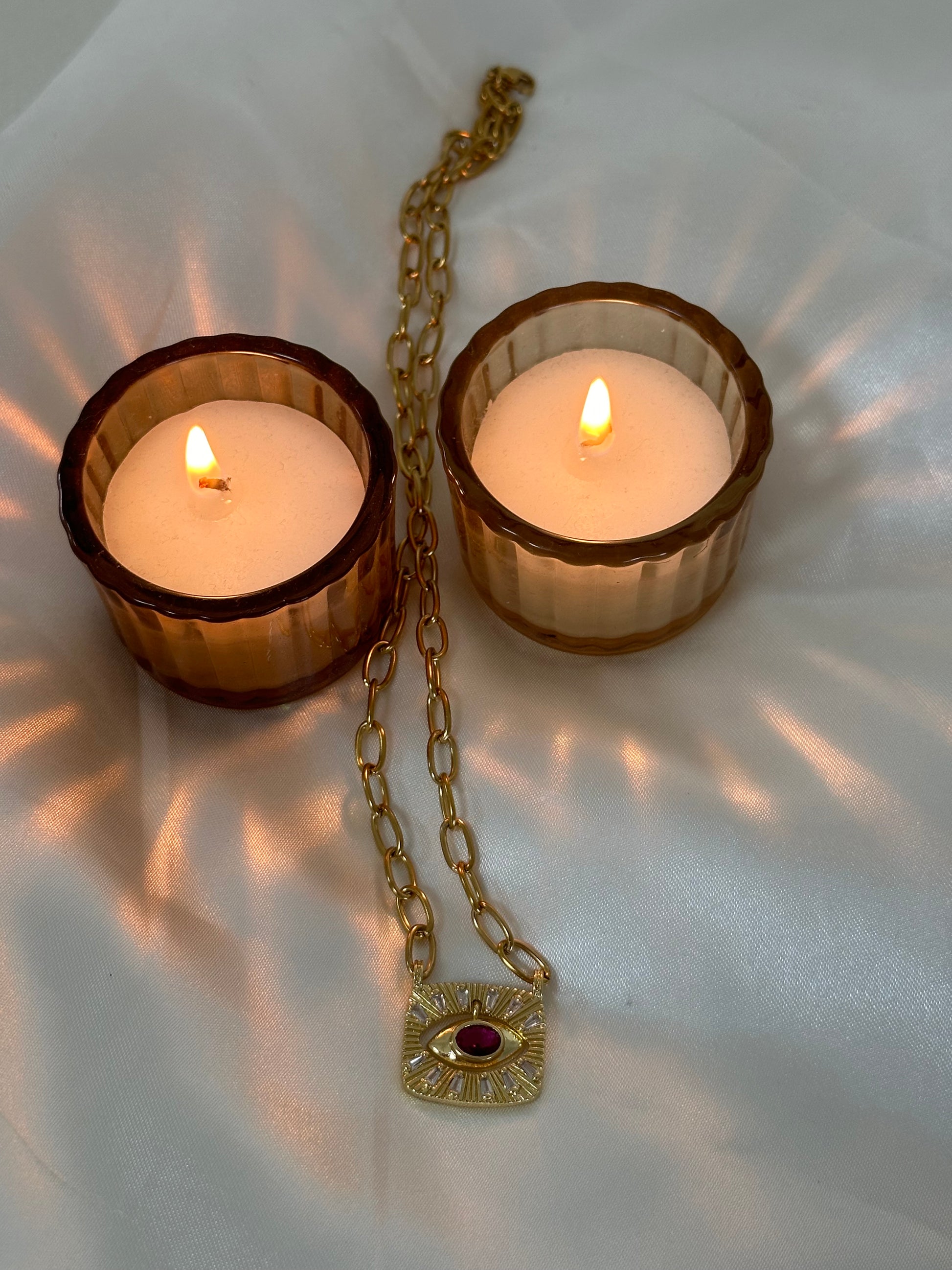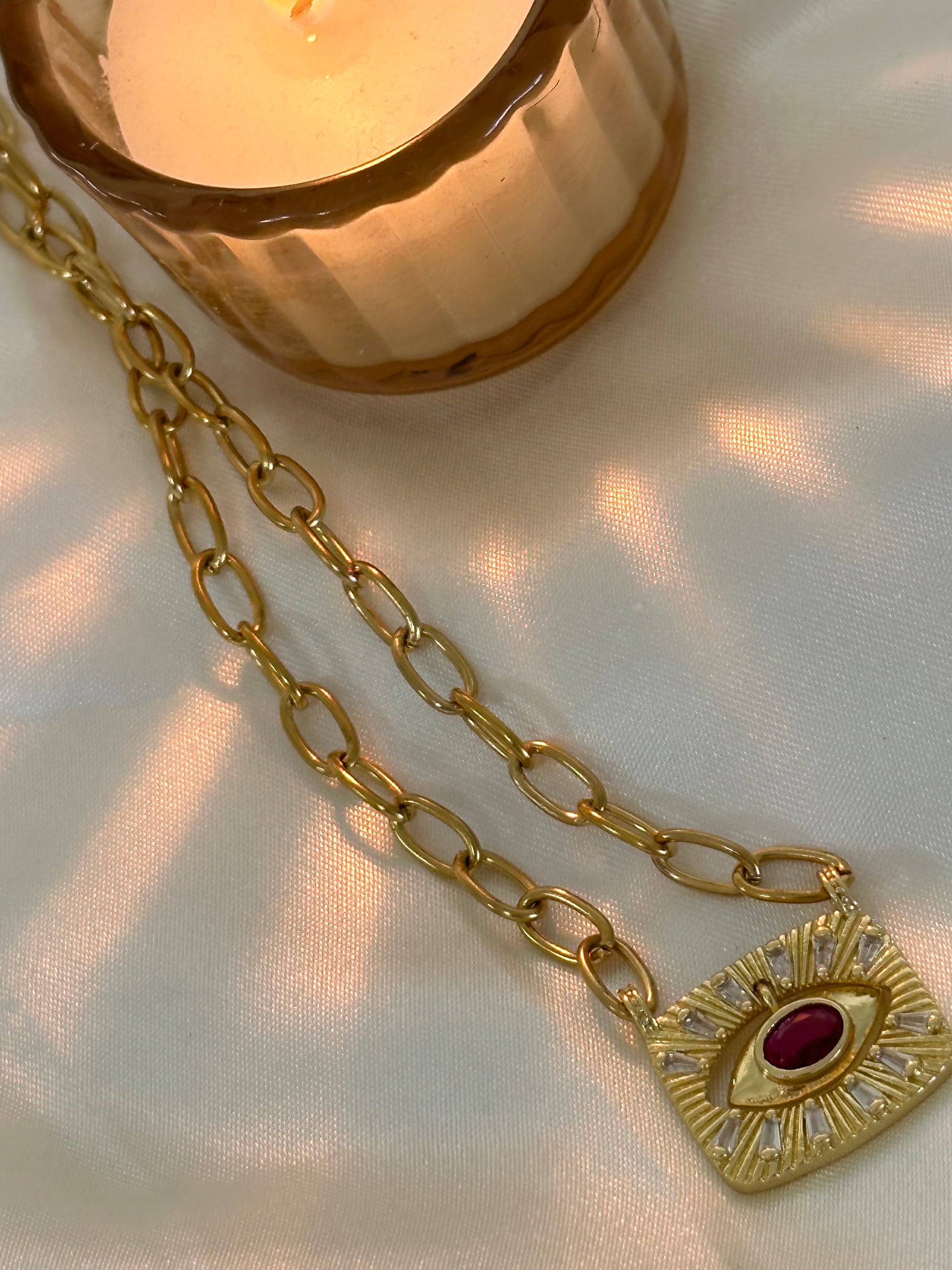 בשילוב תליון פליז מלבני משובץ זרקון עין ורודה