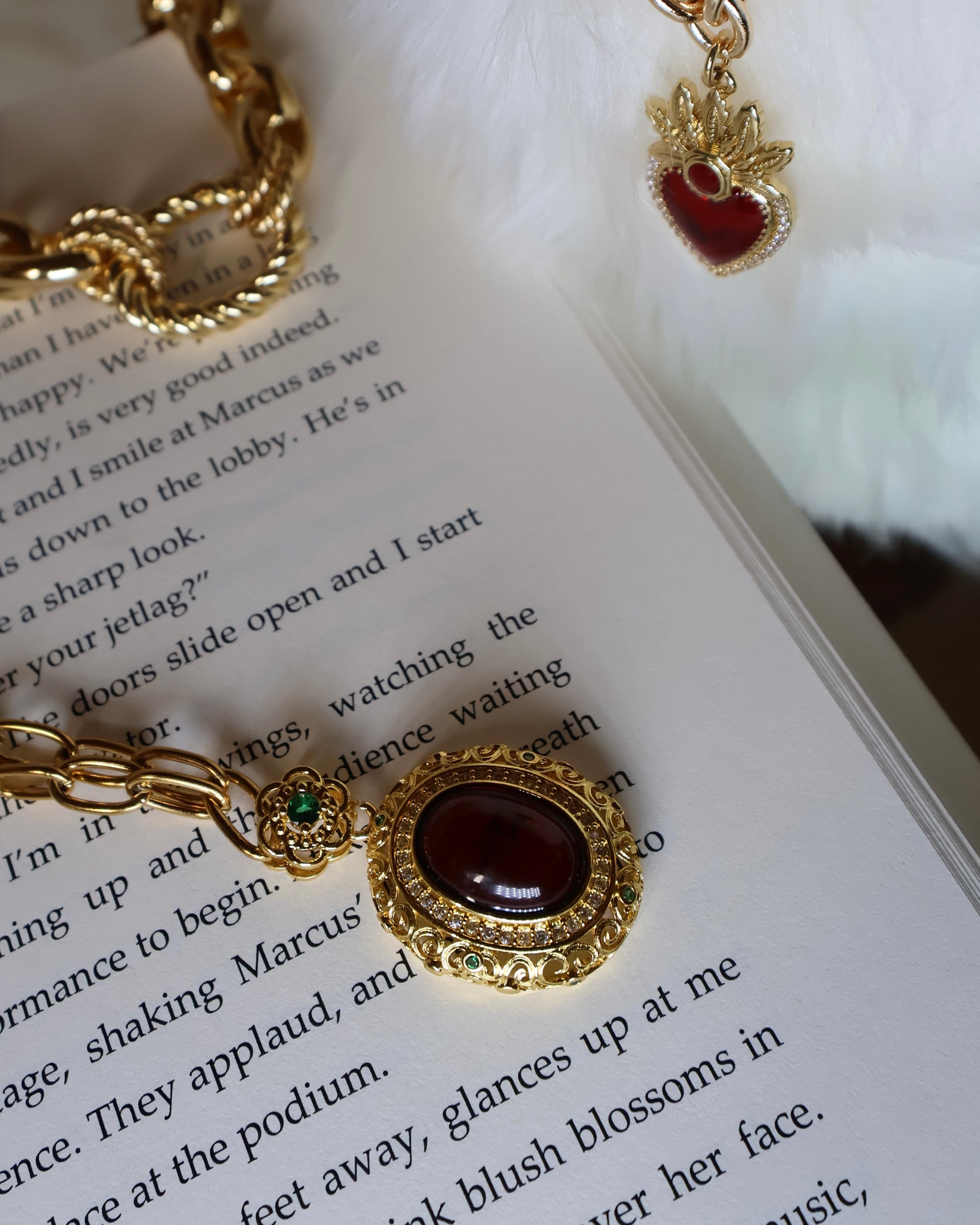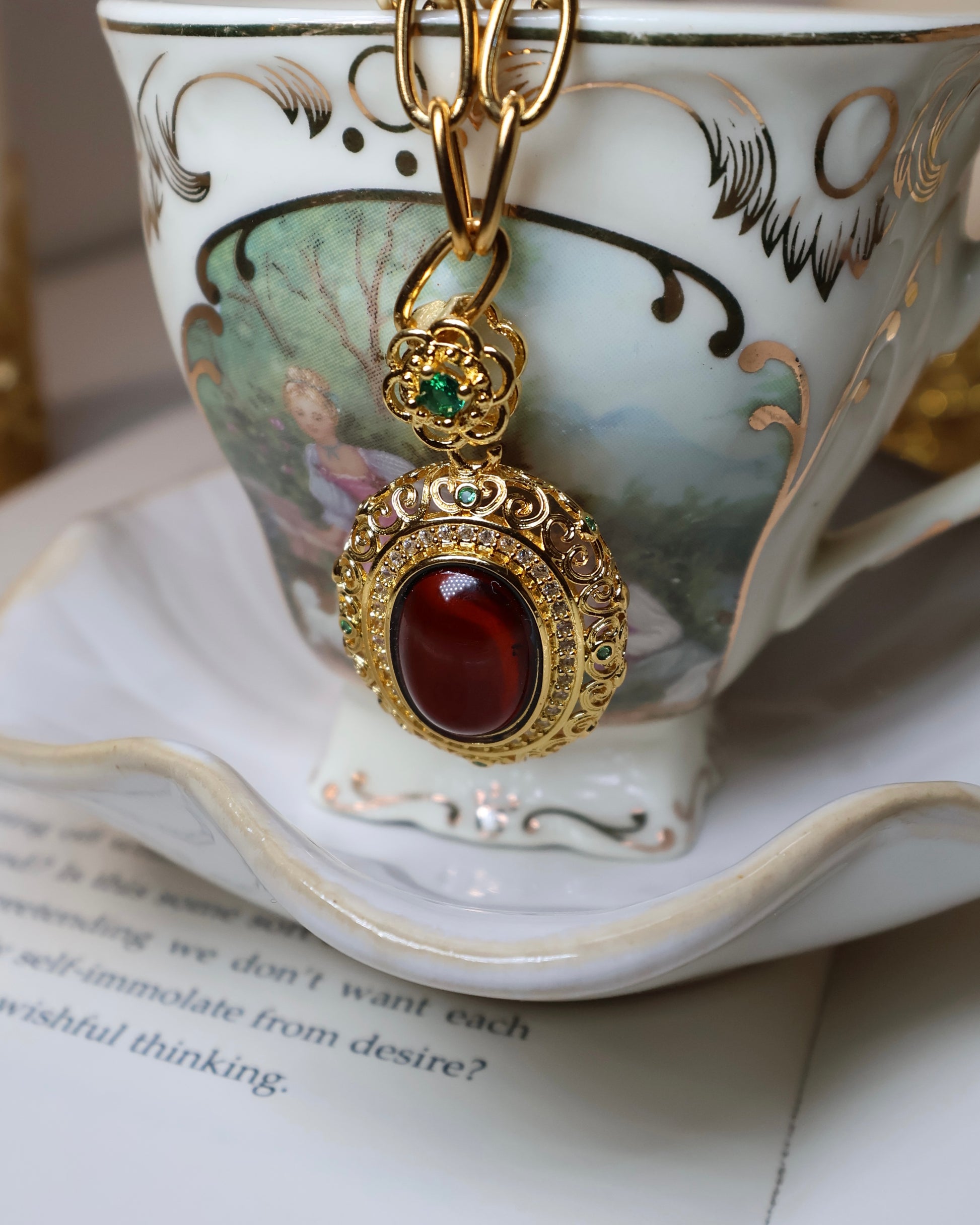 תליון פליז גדול משובץ זרקונים ואבני חן