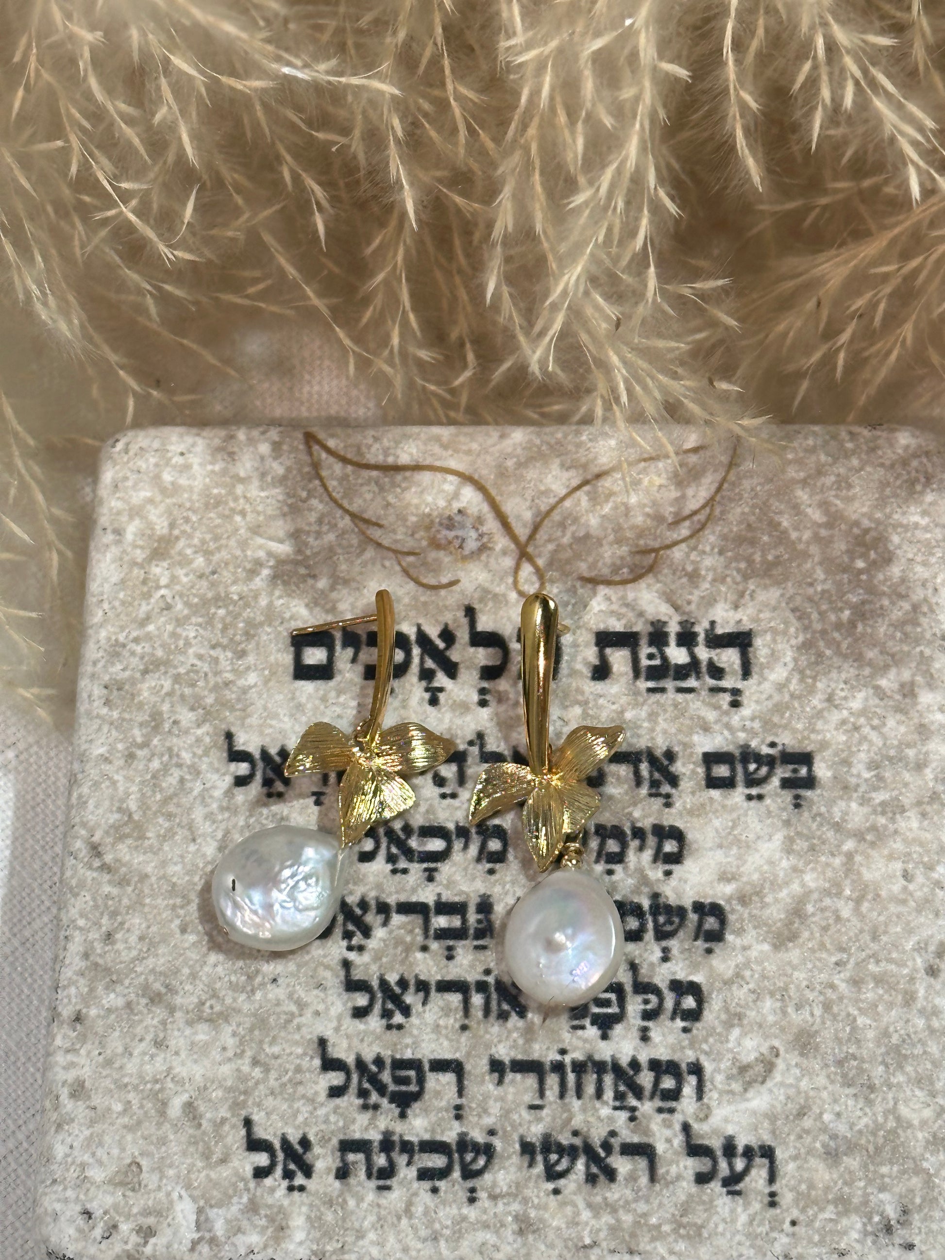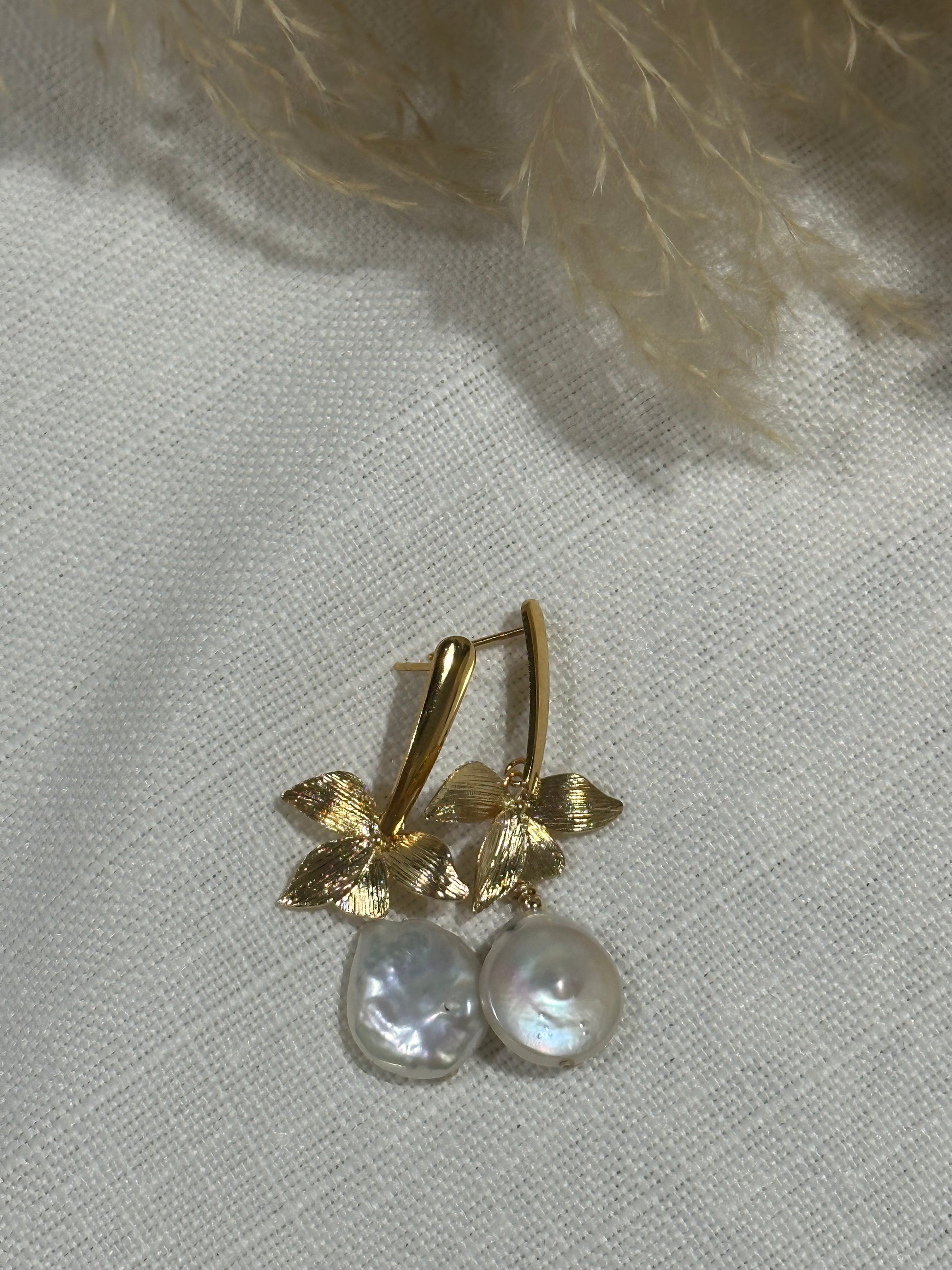 עגיל ציפוי זהב צמוד לאוזן בתוספת פרח עשיר