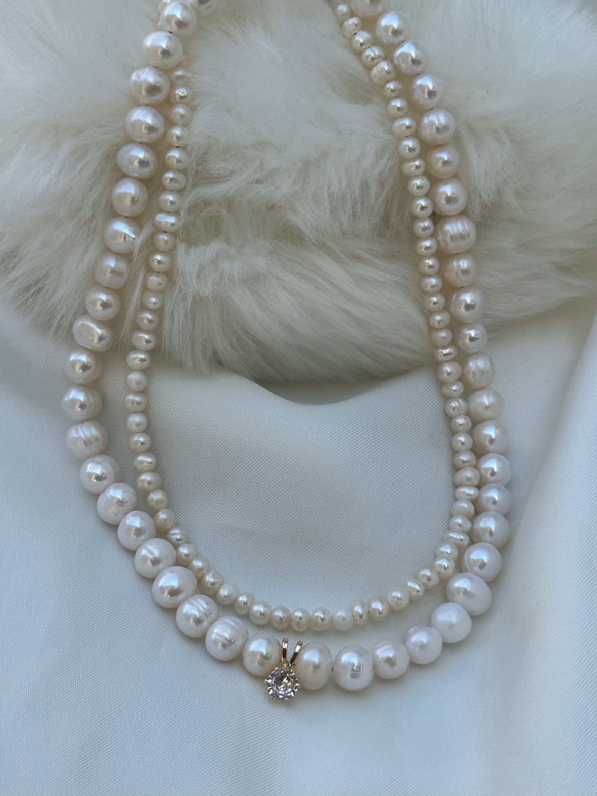 עשויה מפנינים אמיתיות ב 2 גדלים שונים בתוספת זירקון אמצעי גדול